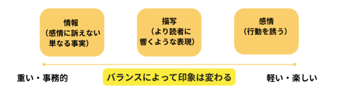 記事の目的やターゲット、メディアの種類によって、どこに比重を置くべきなのか、バランスを考えることが大切なのです。